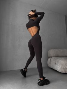 Жіночий комбінезон з довгим рукавом та легінсами | VV Brand створений для тих, хто любить сильний, графічний силует і акцент на спині. Спереду комбінезон виглядає лаконічно: чисті лінії, довгі рукави та облягаюча посадка. Уся увага зміщується назад — глибокий виріз відкриває спину, візуально витягує фігуру та підкреслює лінію талії.